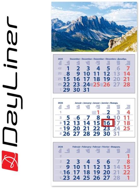Paraméterek, termékleírás - Dayliner Speditőr naptár 3 tömb, 3 hónap Maxi Club 350 × 820 mm, fehér lapokkal Hegy Dayliner 2026 (DL6SP-3MACU-HE) - web24