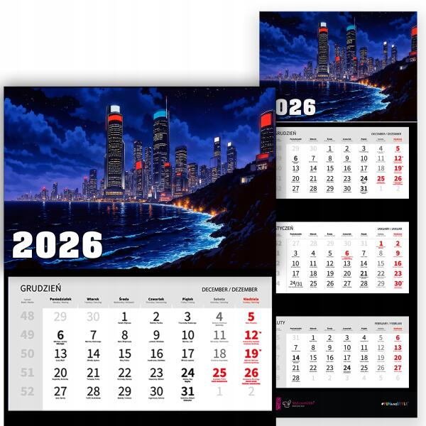 Háromrészes Naptár 2026 Fali Irodai Dekorációs Stílus Divatos AjándékALLEGRO