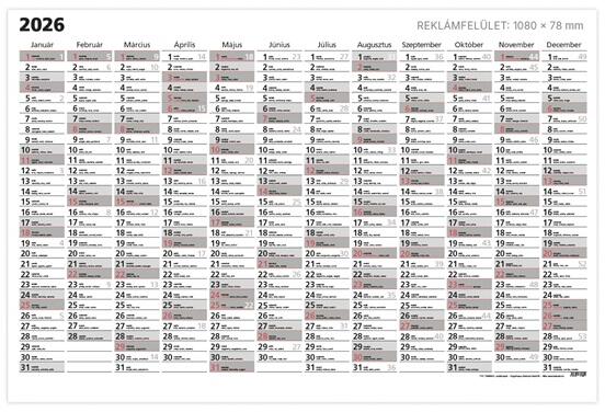Egyoldalas, fekvő terminus plakátnaptár névnapokkal, emblémázható. Méret: 1180x800mm