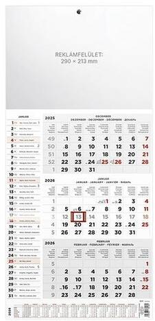 1 tömbből álló 3 havi speditőr falinaptár, névnapokkal.