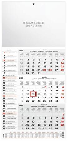 T077 SPEDITŐRNAPTÁR 3 HAVI 1 tömbből álló 3 havi speditőrnaptár. Kiterített mérete: 290 × 628 mm, szállítási méret: 290 × 415 mmálló, tűzött, 1 tömb, emblémázható, 3 hónap, 290 × 628 mm