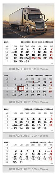 Speditőrnaptár TOPTIMER T073 4 tömbös 4 havi Kamion 2026.