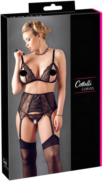 Cottelli Collection Plus Size - Csipke fehérnemű trió (fekete) (22119551061)