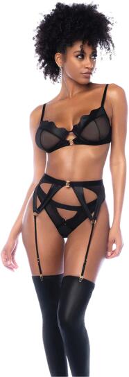 A Mapalé Rock Star egy három darabos szett, amely a következőket tartalmazza: Melltartó: Merevítős a tartás és a forma érdekében, állítható pántok a kényelem érdekében. Tanga: Áttetsző hálós anyagból készült, nedves hatású és kontrasztos anyaggal. Harisnyakötő: Gyűrűkkel az érzéki és merész megjelenésért. A harisnya nem része a szettnek, de a harisnyatartó öv készen áll a felcsatolására. A szett kiváló minőségű, rugalmas és testhez simuló anyagokból készült, így kényelmes viseletet biztosít.