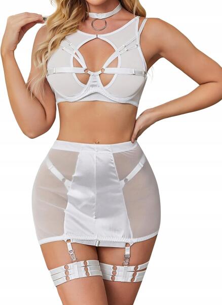 Női Szexi Fehérnemű Szett 6 Darabos Combharisnyatartóval Fehér M Méret (B0BY1LL3BH)ALLEGRO