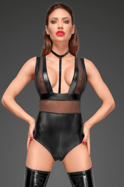 Noir Handmade F183 Powerwetlook Body with Wide Straps, Tulle Inserts and Velvet Choker XXL