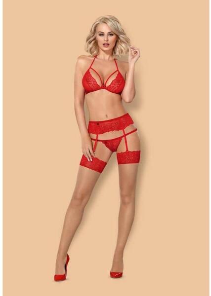 Obsessive 838-SEG-3 set 3-pcs red L/XL fehérnemű szett - piros, L/XL, csipkés