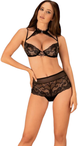 Obsessive Elizenes - mintás, átlátszó melltartó szett (fekete) (22148141131) - szexaruhaz