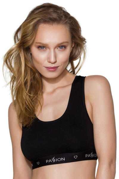 Elasztikus pamutból készült puha felső, rögzítés nélkül, aládrót nélkül, fejre húzva. Versenyzős háttámla, széles pántok beállítás nélkül. A rugalmas kerületnek köszönhetően a felső a helyén marad, ugyanakkor korlátlan mozgásszabadságot biztosít.