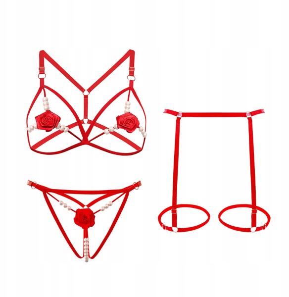 Piros Szexi Női Erotikus Fehérnemű Harisnyatartó öv Gyöngyökkel
