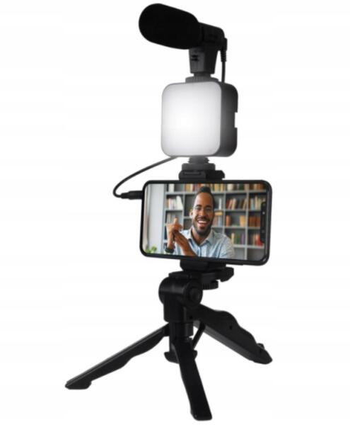 Greifen Strimer Social Media Tripod Vlogoló Szett Lámpával Mikrofon (TRIPOD Z LAMPĄ I MIKROFON)