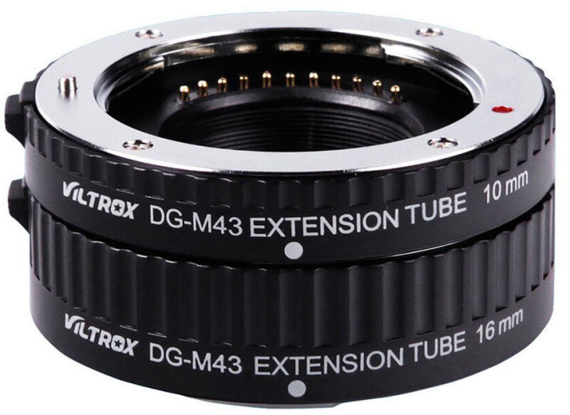 Viltrox DG-M43 (10mm/16mm) Automatikus Hosszabbítócső A Viltrox DG-M43 (10mm/16mm) Automatikus Hosszabbítócső készlet praktikus és megbízható kiegészítő minden M43 rendszerű objektívhez, amely lehetővé teszi a közelebbi fókuszt és nagyobb nagyítást. A csövek megtartják az autofókusz és automata expozíció funkciókat, alumínium kivitelük és automata érintkezőik pedig hosszú távú stabilitást biztosítanak. A védősapkák és kompakt kialakítás maximális rugalmasságot nyújtanak minden makrófotós számára, legyen szó stúdióról vagy terepi munkáról.