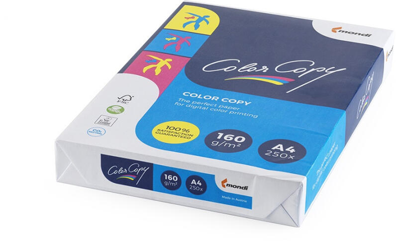 Color Copy egy ideális papír színes nyomtatáshoz, garantáltan élethű szineket, brilliáns színes másolási és tökéletes nyomtatási eredményeket biztosít! Legnépszerűbb felhasználási területei prezentációk, meghívók, brossúrák készítése!5csomag/karton A Mondi papírgyár számára nagyon fontos a környezetvédelem, melyet többek között a Color Copy CO2 semlegességével is képvisel. A karbonsemleges termékek fontos mérföldkövei földünk megmentésének a klímakatasztrófától. Katalóguskód: 3929