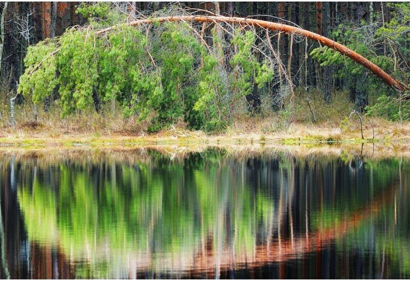A tóban tükröződő fa vászon szimmetriája, 80x50 cm, tabloucanvas952, többszínű (tabloucanvas952/50x80cm)