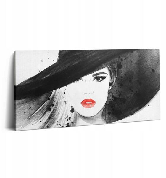 Wallfluent Vászonkép Canvas A Szobába Fa Kerettel Nő Kalapban És Fekete (010030010010000075270)ALLEGRO