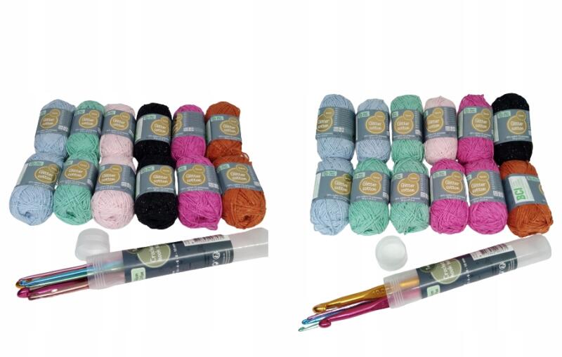 Alison & Mae Brokátos Pamut Fonal Készlet 6 Színben, 24 Db 2X Nagy Méretű Horgolótű, Nagy Csomag (2578029)ALLEGRO