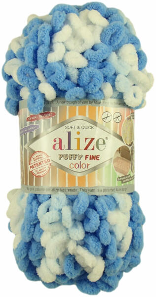 alize Puffy Fine Color 6371 - kék, fehér (kötés kézzel, tű) (7288)