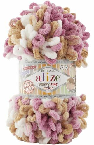 alize Puffy Fine Color 6402 - rózsaszín, fehér, barna (kötés) (0194)