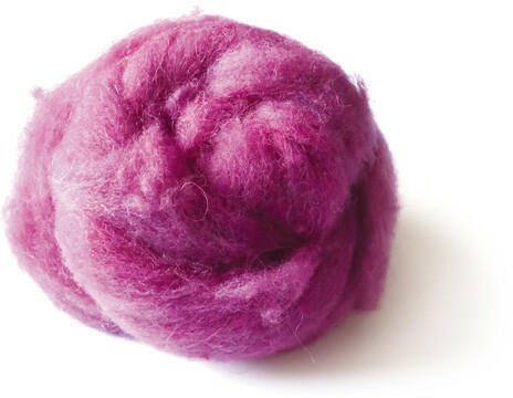 Kártolt gyapjú, lila kb. 0,1 kg/cs.