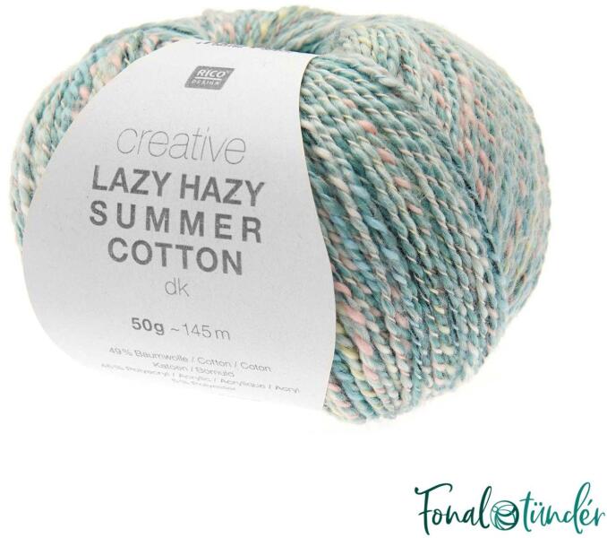 Mit kössek / horgoljak Rico Lazy Hazy Summer fonalból? Ez a fonal a könnyed nyári kiegészítők alapanyaga! Köthetsz vagy horgolhatsz belőle nyári pulóvert, kardigánt, topot vagy vállkendőt a hűvösebb estékre. A legegyszerűbb minta is jól áll neki, hiszen finoman texturált, anyagában színváltós. A gombolyagok 50 gramm os kiszszerelésben kaphatóak 145 méter es hosszban. Az ajánlott kötőtű illetve horgolótűméret 4mm . A Lazy Hazy Summer fonalból készült ruhadarabjaidat 30 fokon mosd, és ha teheted, fektetve szárítsd. Nem tudod mennyi gombolyagot vegyél? Használd az online kalkulátorunkat, ahol megadhatod a méretet és a kiválasztott fonalvastagságot. >>>  Online Fonal Kalkulátor  >>>Gyere és nézz körül a kötés és horgolás minták között, ami ebből a fonalból készül! Körülnézek a minták között >>>