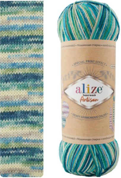 Superwash Artisan 9001 - zöld, kék, bézs (Önmintázó fonal) (0341)