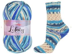 Magas gyapjú tartalmú fonal. Tökéletes zoknik kötéséhez, de persze mást is köthetünk belőle. Zokni kötésekor szépen kiadja a csíkos mintázatot. A kész zokni kimélő programon 40 fokon, gépben is mosható.