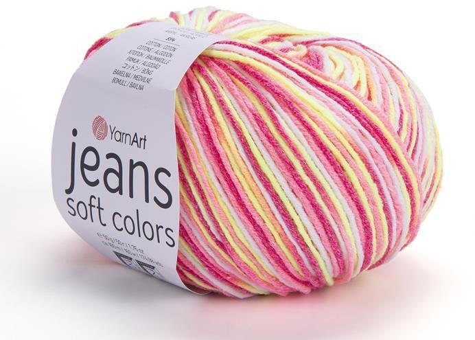 A YarnArt Jeans Soft Colors egy igazán különleges fonal – finoman váltakozó színei és puha tapintása miatt hamar a kedvenceddé válhat! Ez a fonal a klasszikus YarnArt Jeans tulajdonságait örökölte, de szemet gyönyörködtető színátmenetes változatban érkezik. Összetétel : 55% pamut, 45% poliakril – ettől lesz kellemes tapintású, de mégis jól formázható és strapabíró. Gombolyag súlya / hossza : 50 g / kb. 160 m Ajánlott tűméret : kötéshez: 3.5 mm, horgoláshoz: 3 mm Tökéletes választás tavaszi-nyári horgoláshoz vagy kötéshez , hiszen kellemesen puha , mégsem túl vastag. Akár amigurumikat készítesz, akár egy kis ruhadarabot, sapkát, kendőt vagy egyedi lakásdekorációt, ezzel a fonallal öröm lesz dolgozni. Puha, mégis jól tart, nem szöszölődik, nem szúr, babáknak és érzékeny bőrűeknek is ideális.