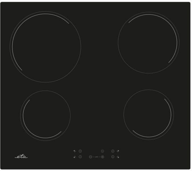 56 cm széles, beépített elektromos főzőlap érintésvezérléssel az elülső oldalon. Az ETA 679090000 készülék főzőzóna maradékhőmérséklet-jelzővel és biztonsági zárral rendelkezik.