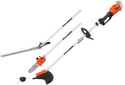 Az a Dual Power 4 az 1-ben kerti szerszám tökéletes minden kertészeti feladathoz. Átalakítható sövénynyíróvá, fűnyíróvá, bozótvágóvá és láncfűrésszé. 1000 mm-es tengelyhosszának köszönhetően a sokoldalú szerszám ideális a magas sövények és a megközelíthetetlen cserjék vágására. A POWDPG7553 másik nagy előnye a kefe nélküli motor: erőteljes és tartós motor, amely kevesebb rezgést produkál és csak kevés karbantartást igényel. Mivel a szerszámot egy erős, 40 V-os Dual Power akkumulátor táplálja, nincs gond a hosszabbító zsinórokkal, garantálva a teljes mozgásszabadságot. A bozótvágó vágási szélessége 255 mm, míg a fűnyíró 320 mm-es. A fűnyíró egy 5 m hosszú vágózsinórt használ egy tap & go rendszerrel. Egyszerűen érintse meg a fejét a földön, és új zsinórhossz szabadul fel. A több kerti szerszám átalakítható 410 mm-es sövénynyíróvá is. Ez a vágógép lézerrel vágott pengével rendelkezik, amely kettős hatású, amely lehetővé teszi a nagyon pontos vágást akár 22 mm vastag ágakig. A láncfűrész 200 mm rúdmérettel rendelkezik, és zökkenőmentesen működik, nem utolsó sorban kiváló minőségű, automatikus kenést biztosító Oregon láncának köszönhetően. Ezzel a multifunkcionális Dual Power szerszámmal garantált a biztonságos munkavégzés: a gyorsleállítás használat után azonnal leállítja a késeket. A biztonsági védőburkolat és a védőburkolat biztosítja a biztonságos használatot, valamint a biztonságos tárolást. A hordszíj lehetővé teszi az ergonómikus munkát.