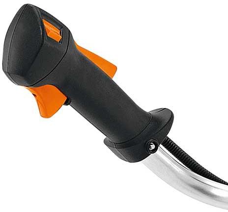 Kétkaros fogantyú. A kétkezes fogantyút ergonomikus fogantyúnak is nevezik. A fű vágásánál lehetővé teszi a természetes kaszáló mozdulatokat. Egy szorítócsavarral könnyű beállítani. Motoros szegélynyíróknál és kaszáknál a kétkaros fogantyú mindig jó választás, amennyiben gyakran vágnak nagyobb felületeket. Többfunkciós fogantyú. A többfunkciós fogantyút motoros fűszegélynyíróknál, motoros kaszáknál és sövénynyíróknál használjuk. A motor működtetéséhez összes kezelőelemet ebbe a fogantyúba integrálták. A kezelés egyszerű és biztonságos - a kéz mindig a fogantyún marad. A többfunkciós vezérlő a fogantyúba van beépítve. A körfogantyús gépeknél a kezelőelemek a nyélben találhatóak.