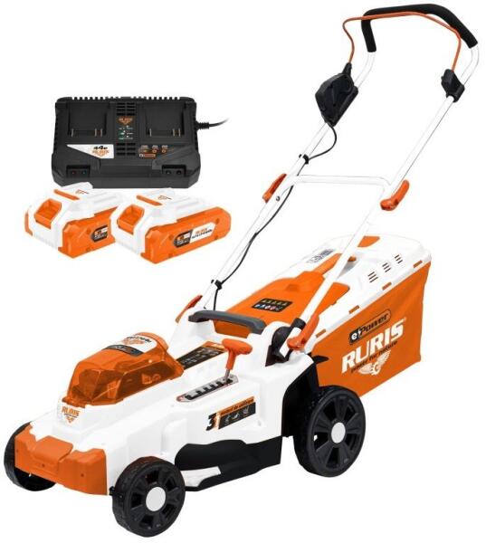 A Ruris RXI3744e akkus fűnyíró praktikus megoldást kínál a gyepápoláshoz. Szénkefe nélküli villanymotorral felszerelve, ez a gép csendes és kibocsátásmentes működést kínál, így különösen alkalmas lakó- és városi környezetben való használatra. A két port lehetővé teszi a 20 V-os lítium-ion akkumulátorokkal való működést, a megnövelt autonómiát és a rugalmasságot nagyobb felületeken történő munkavégzés során, anélkül, hogy áramforráshoz kellene csatlakozni. A 25 és 27 mm között állítható munkamagassággal és 370 mm-es munkaszélességgel a Ruris RXI3744e akkumulátoros fűnyíró könnyen alkalmazkodik a különböző vágási körülményekhez és gyepfelületek méretéhez. A többfunkciós fűgyűjtő, hátsó kidobó és mulcsozó funkciók változatos lehetőségeket kínálnak a levágott fű kezelésére. A Ruris RXI3744e akkumulátoros fűnyíró akár 650 négyzetméteres területekre is ajánlott, és hatékony, gyors gyeplevágást biztosít. A 3300 fordulat/perc sebesség és a 160 Wh összteljesítmény állandó teljesítményt és precíz eredményeket biztosít. Ezenkívül a csökkentett rezgés hozzájárul a felhasználói kényelmet biztosítva használat közben, a műanyag ház pedig tartós és könnyű konstrukciót biztosít. Az első és hátsó kerekek, amelyek átmérője rendre 15 cm, illetve 20 cm, biztosítják a manőverezhetőséget és a stabilitást különféle tereptípusokon.
