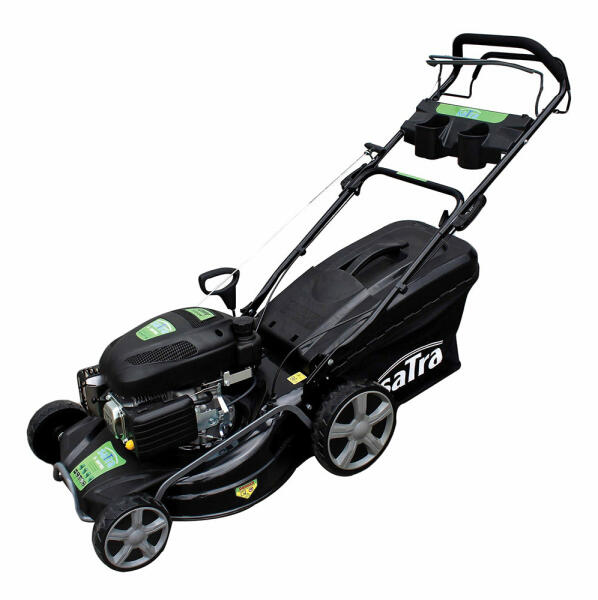 A BENZINMOTOROS FŰNYÍRÓ GÉP 3,2 KW 48 CM SATRA egyenletes és hatékony működést biztosít. Alacsony az üzemanyag fogyasztása és fenntartja az EU által előírt kipufogógáz kibocsátási paramétereket. A fűnyíró mínőségi anyagokból készült, amely meghosszabbitja tartósságát. Kezelése ügyfélbarát, és sokat segítenek a csapágyas kerekek. Ugyanakkor öntisztító rendszerrel rendelkezik. Négy kaszálási mód közül lehet választani: lerakás a kosárba, oldalra, hátra vagy darálás.