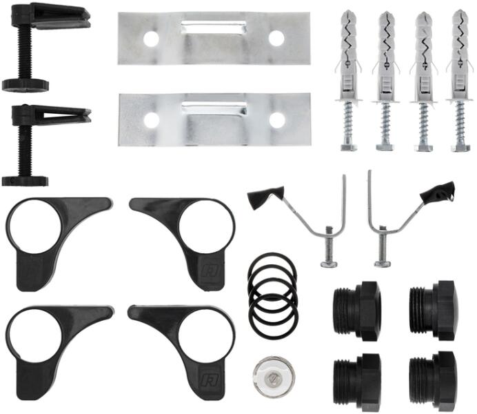Az egységcsomag fehér vagy fekete színű műanyagokkal , valamint natúr eloxált vagy fekete eloxált csavarokkal kapható, így könnyen illeszthető a radiátorod stílusához.