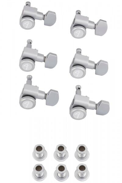 Set of six locking tuners designed to fit most modern-style Fender electric guitars with dual-pin mounting configuration. Tall post tuners are ...