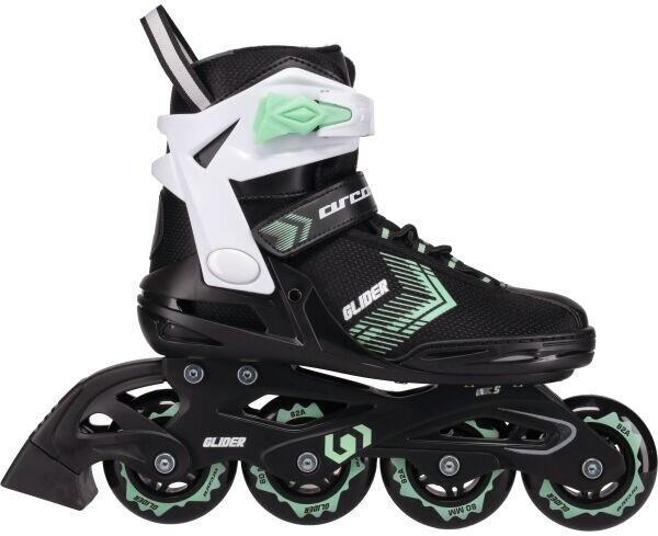 A 80 mm átmérőjű kerekekkel és kompozit vázzal rendelkező Arcore GLIDER fitness görkorcsolya kezdők számára készült, hobbi korcsolyázáshoz. A fűző, a tépőzáras pánt és a mikrometrikus csatok biztosítják a kényelmes illeszkedést.