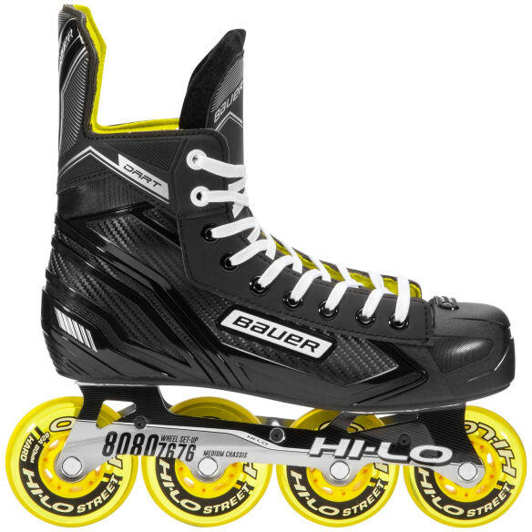 A Bauer RH DART SKATE SR szenior görkorcsolya ideális választás kerékpárutakra vagy görhokihoz betonon és aszfalton. A korcsolya cipőrésze a Bauer minőségét tükrözi ugyanúgy, mint a michassis HI - LO csapágyak és a 82 A keménységű kerekek.