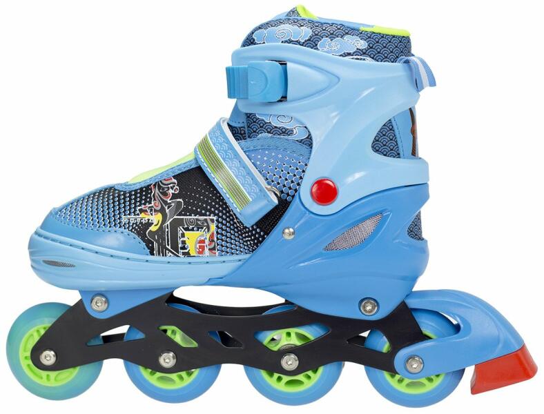 A fél puha cipő kényelmet és az optimális rögzítést kínálja: a fűző, a csat és a tépőzár, amely garantálja a maximális biztonságot használat közben. Egy egyszerű beállító rendszer segítségével könnyedén és gyorsan beállíthatja a   méretet. Az első kerekek LED-ekkel vannak felszerelve és látványos hatást biztosítanak.