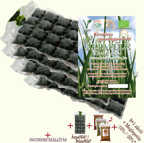akciós bőségcsomag - "ez megéri nekem" - 4+1 csomag gyorsfagyasztott kézműves bio árpafűlé 320 gramm/csomag. 24nap x 4 kocka / 48 nap * 2 kocka+ AJÁNDÉK 1 csomag (!) Búzafűlé* vagy Árpafűlé* vagy Liofilizált Búzafűlé kapszula*+ AJÁNDÉK szőlőmagőrlemény / búzafűpor / mustármag*** (csak kiszállítással)+ INGYENES országos kiszállítás+ MeglepetésA gyorsfagyasztott árpafűlé a legjobb árpafűlé termék (a hasonlóan profi minőségű árpafű frissen préselése után), melyet szintén már 2010 óta készítünk, és szintén bio tanusított, vegán és gluténmentes, profi üzemben előállított kézműves termék, 200% minőség garanciával ! Életszikra Búzafűlé és Árpafűlé termékek - prémium termékek profin készítve