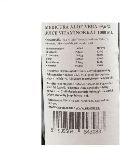 Medicura aloe vera 99, 6%-os juice 1000ml