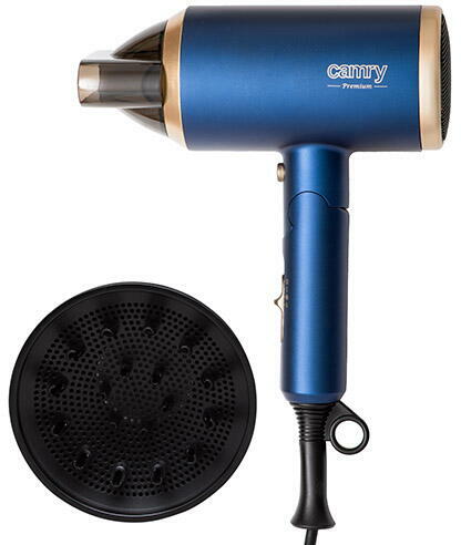 Hair dryer 1800W ION + diffuser + foldable handle CR 2268 Camry The Camry 2268 hair dryer is not only a device that will dry your hair, but also a tool that will help you create the perfect hairstyle in the comfort of your home. It is the perfect companion to your daily hair care ritual. Camry 2268 offers 2 levels of airflow and 2 temperature settings, so you can adjust the drying to your hair. Using the "Quick Cool Shot" button, you can quickly cool your hair, which helps fix the hairstyle and make it last longer. The built-in ionization system will make your hair less susceptible to static electricity, leaving it smooth and shiny. The Camry 2268 dryer is equipped with a practical hanging handle, which makes it easier to store and saves space, and thanks to the foldable handle, the dryer is compact and easy to store or take on a trip. The Camry 2268 hair dryer is a reliable tool that will help you achieve your dream look without having to visit a hairdressing salon. Now styling your hair can be quick and easy.
