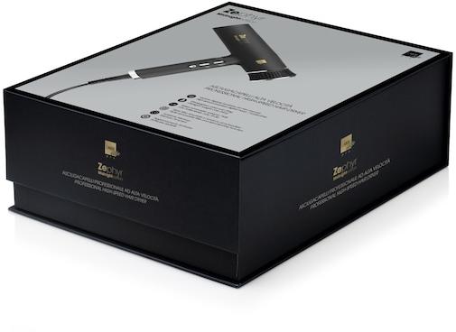Zephyr Midnight Edition professzionális hajszárító: nagy sebesség és technológia a maximális teljesítmény érdekében. Most egy limitált kiadású éjfekete színben. A digitális kefe nélküli motor nagy sebességgel forog (110 000 ford. /perc), hosszú élettartamra tervezték (több mint 2500 óra). Kategóriájában a leghalkabb hajszárító, mindössze 75 db, és nem ad ki durva sziszegő hangokat. A Zephyr erőteljes légáramlásának köszönhetően a száradási idő lerövidül a hagyományos hajszárítókhoz képest, míg az Extra-ion Shine technológia páratlan fényt kölcsönöz a hajnak. A LED állapotjelző lámpák lehetővé teszik a beállítások azonnali vezérlését (akár 12 lehetséges konfiguráció), a Memory funkciónak köszönhetően pedig a legutóbb használt beállítások előhívása is lehetséges. A levegőelszívás kettős védőszűrővel történik: egy szivacsos porszűrő előszűrő és egy mikroperforált acélszűrő. Öntisztító funkcióval ellátva.