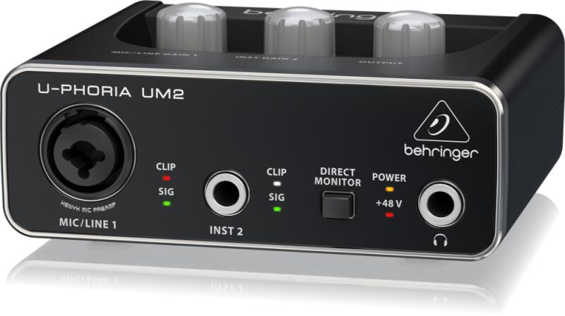 Az UM2, egy ultrakompakt 2 x 2-es, 48 kHz-es USB interfész egy stúdió minőségű XENYX mikrofon előerősítővel és kapcsolható +48V-os fantomtáppal.