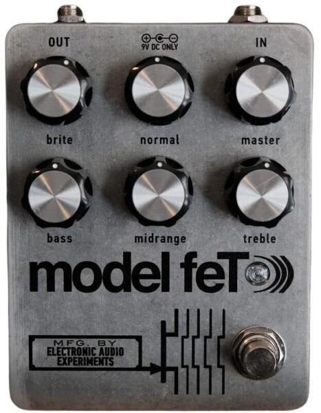 Ez egy automatizált szoftver általi fordítás:FET modell egy tranzisztor alapú előerősítő, amelyet a legendás Sunn Model T ihletett. Nem csak egy pedál a nehéz hangokhoz – közepes torzítású erősítőként is nagyszerűen működik pedál kialakításban, választható, sötét, mégis tiszta és jelenlévő hangzással. Egy emulált teljesítményerősítő fokozatot használ, amely kiterjeszti az erősítéstartományt, és elegendő headroomot és teljesítményt biztosít egy végerősítő, hangláda-szimulátor vagy DI/DAW meghajtásához. A vezérlés csatornákból áll Normál és brit (párhuzamosan fut), háromsávos EQ ( Mély, közép, magas hangok ) és a fő vezérlő Fő kötet. A bypass relés kapcsolású, valódi bypass móddal, a bemeneti impedancia 500 k, a kimeneti impedancia 1 k. Tápellátás: 9 V DC (középen negatív), áramerősség ~65 mA.