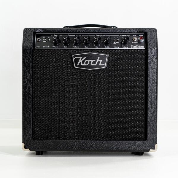 played with the speaker turned off for recording or headphone use. There is also a short scale spring reverb tank, with front-mounted level adjustment. We believe the Koch Studiotone is one of the most versatile and compact guitar amplifiers on the market today. Koch Studiotone 20 combo specifications:3 channels (Clean, Overdrive & Overdrive boost) foot switchableOne set of passive bass-mid-treble tone controlsTwo front-panel voicing switches (mid-shift 2 way, bright 3 way) for all channelsCustom designed VG12-60 Koch 12" speaker4, 8, & 16 Ohm speaker outputs plus speaker on/off switchSerial effects loop (10 dBV signal level)Recording output with speaker simulation and 2 voicing filtersDirect outputs (non-filtered, clean channel & headphone)Short scale three spring reverb tank2 way footswitch includedDimensions 44,5 w x 23,5 d x 43,5 h. Weight 15 kg