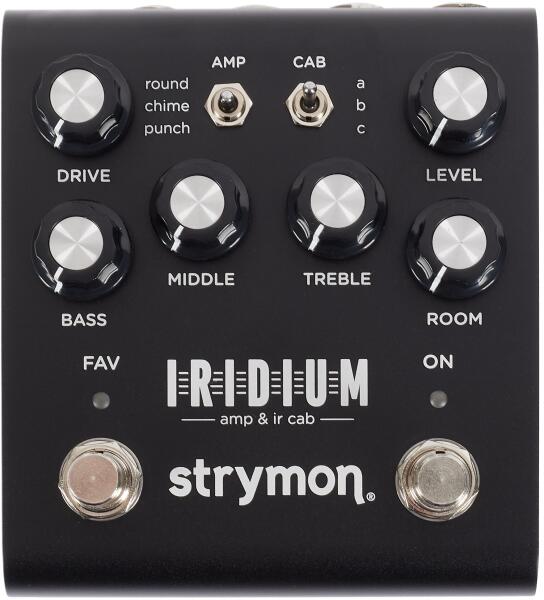 Irányítás: Drive, Level, Bass, Middle, Treble, Room, Amp switch, Cab switch,