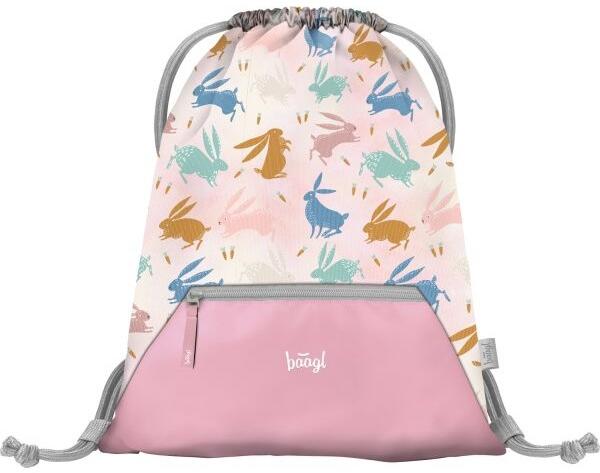 A pasztell színű tornazsákot színes nyuszik díszítik.
