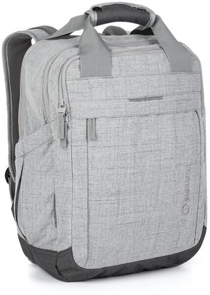 Bagmaster három tágas rekesszel rendelkezik, amiben minden elfér, amit iskolába, értekezletre vagy munkába kell vinni. Többé nem kell kényelmetlenül a vállán lévő táskában cipelnie laptopját, a hátizsák hátsó rekeszét párnázott zsebként alakítottuk ki laptop számára. Az első rekeszben található egy rendező ceruza, töltő és kábel számára, egy kis hálós zseb és egy karabiner a kulcsnak. A vállpántokat összekötő állítható mellkaspánt növeli a viselési kényelmet, mert ennek köszönhetően a pántok a vállüregben maradnak és nem válnak szét. A hátizsák elől található zsebe puha selymes anyagból van mindig értékelni fogja, ha keres benne valamit. Ezenkívül az anyag kíméletes a mobiltelefonok képernyőjével, óra és egyéb értékek borításával. Az oldalzsebek készen állnak egy kulacs és egy esernyő tárolására. A finoman párnázott hát- és vállpántok kényelmes viseletet biztosítanak télen-nyáron. A hátizsáknak két fogantyúja van, melyeket összecsatolhatsz és a kezedben viheted mint egy kézitáskát.