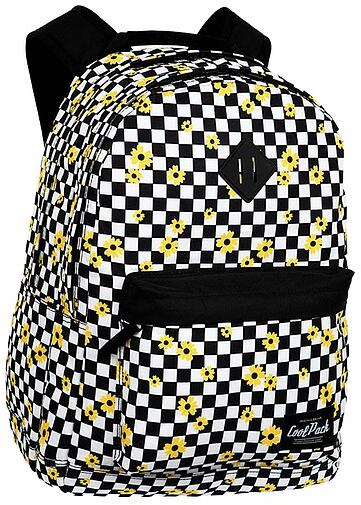 Praktikus iskolai hátizsák szokatlan kivitelben. A vízálló anyag és a kiváló minőségű kidolgozás növeli a tartósságát. A párnázott hátrész és pántok kényelmes viseletet tesznek lehetővé egész nap. Népszerű kollekció sakktáblás háttérrel, melyet apró, sárga virágok kontrasztos elemei egészítenek ki. Ez a mintázat más CoolPack terméknél is megtalálható, komplett kollekció kialakítható. méretei: 45,5 × 32,5 × 18 cm, térfogata: 27 l, anyaga: 100% polyester, súlya: 550 g, 3 cipzáras zseb, praktikus, osztott belső zsebek, laptop tartó zseb, párnázott hátrész és vállpántok