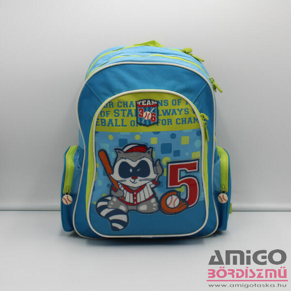 Hátizsák textil vízlepergető anyagból, vékony szivacsos hát és vállkialakítással. Egy nagyobb és egy kisebb cipzáros zsebbel. Mindkét oldalán cipzáras italtartóval. Trolira húzható funkcióval.