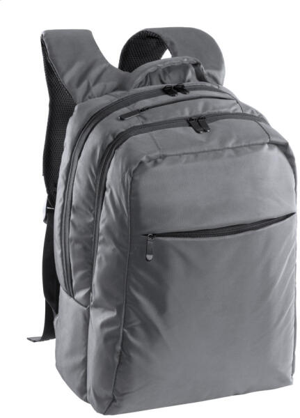 Hátizsák többféle cipzáras rekesszel, párnázott vállpántokkal, hátrésszel és laptoptartó rekesszel (15"). 600D nylon.